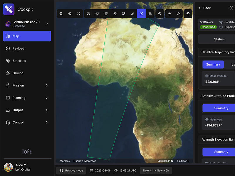 Following application deployment, Cockpit mission control allows customers to task payloads onboard Loft’s satellites via an intuitive web-based UI, enabling users with no prior satellite operations experience to task payloads on demand. Advanced operators can integrate Cockpit into existing tools via API.